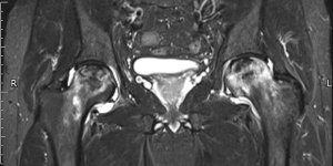 59 ♂ B/L groin pain. 10/10 VAS Initially started on the left side like lateral hip pain. Had 2 steroid injections for lateral hip pain. Uses walking stick. Painful with weight bearing, getting in / out of car. No spinal symptoms. Recent X-ray NAD Exam Antalgic gait Pain deep in groin Hip flexion limited to 90° B/L Minimal internal and external [...] Read more